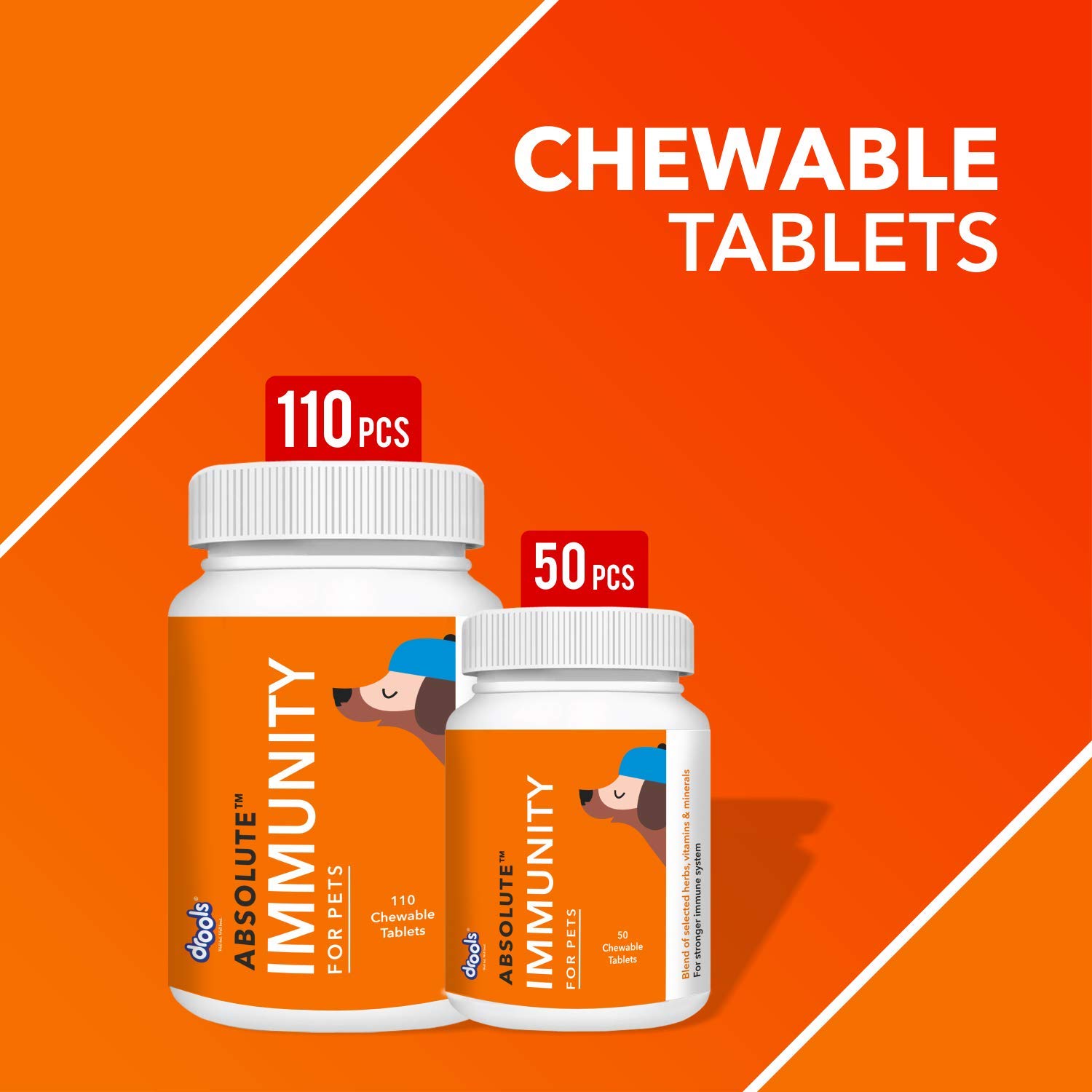 DROOLS Absolute immunity tabs for dogs and puppies from drools contain an optimal mix of immunity boosting herbs and vitamins that help promote good health and better protection against diseases. Enriched with the goodness of ashwagandha, turmeric and bromelain extracts. It Comes in the form of semi-moist highly palatable easy to administer chewable tablets.