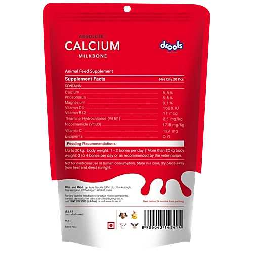 Give your furry friend the gift of healthy teeth and strong bones with Drools Absolute Calcium Bone Pouch for Dogs. Expertly crafted to provide essential nutrients, this tasty bone treat supports your dog’s overall health while satisfying their chewing instincts. Formulated with high-quality ingredients, it ensures your pet gets the calcium they need for optimal bone development and maintenance.