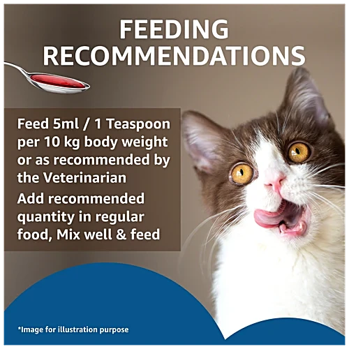Drools Salmon oil for cats is a premium quality salmon oil for cats. It supports cognitive ability, joint and immune functions. Add recommended amount into your pet’s meal. Our veterinary nutritionists have spent years perfecting the recipes of our products to give your pet wholesome nutrition with a mouth-watering taste.