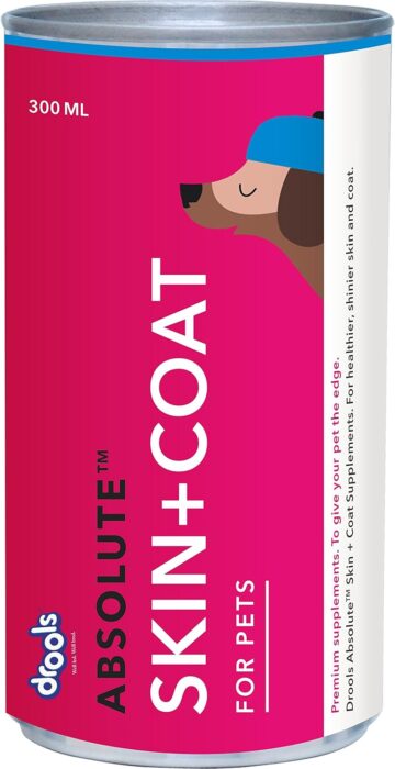 Enhance your dog’s coat health with the Drools Absolute Skin & Coat Syrup Supplement. Specially formulated for dogs, this coat supplement is designed to improve the overall condition of your pet’s skin and fur, ensuring a shiny, healthy and lustrous coat.