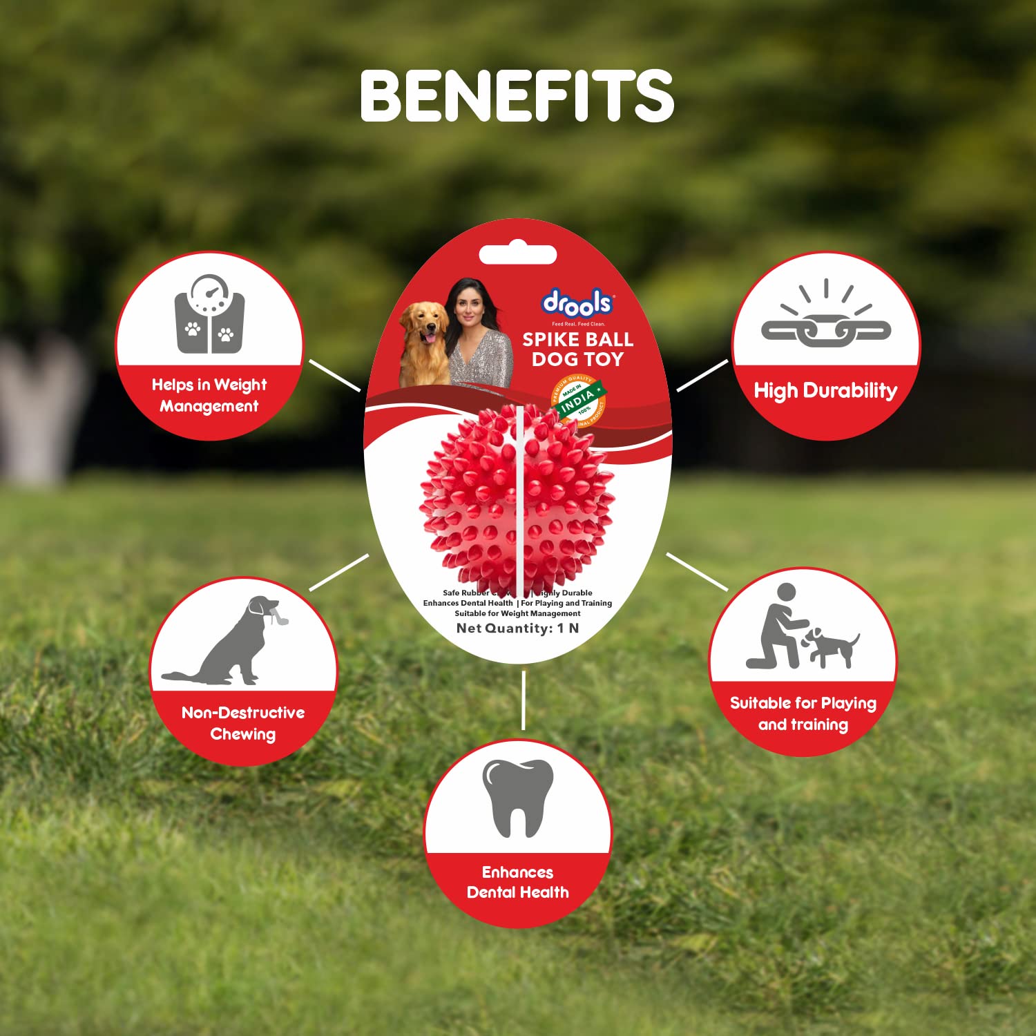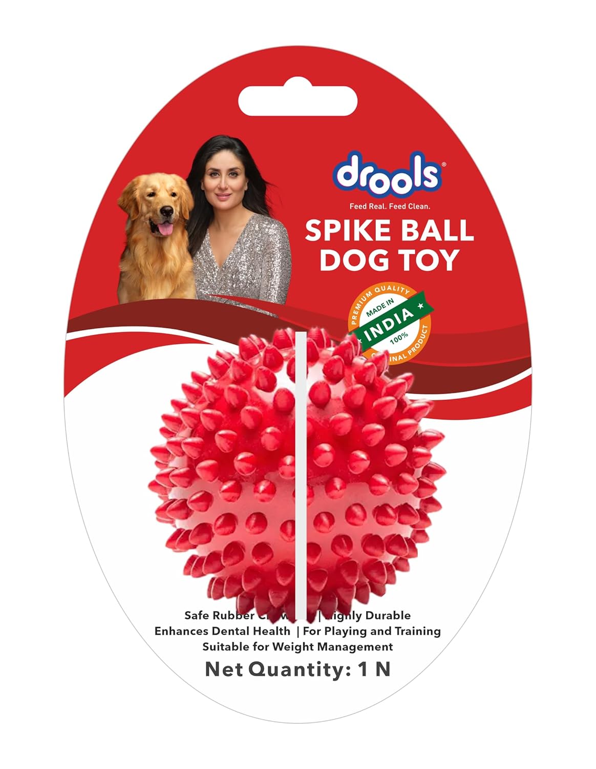 Drools Non-Toxic Rubber Stud Spike Hard Ball Chew Toy is a flexible, non-toxic rubber chew toy. It helps improve dental health and encourages non-destructive chewing. It is suitable for all dogs.