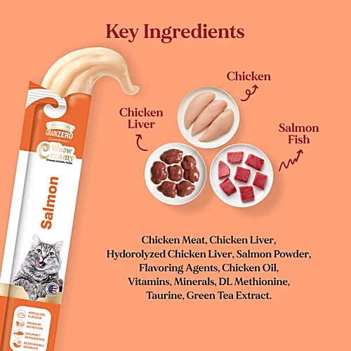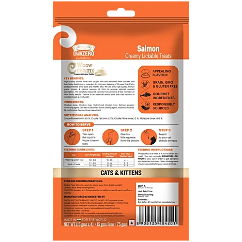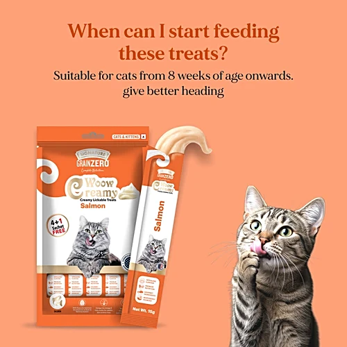 Grain Zero Salmon Creamy Lickable Treats For Cats & Kittens, 75g (15g x 4 sachets + 15g free)