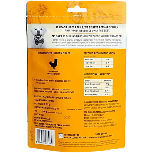 A special treat for your doggo, these bits of chicken jerky are delicious! Made from fresh ingredients these are healthy treats. Chicken is a great source of protein and a pet favourite.