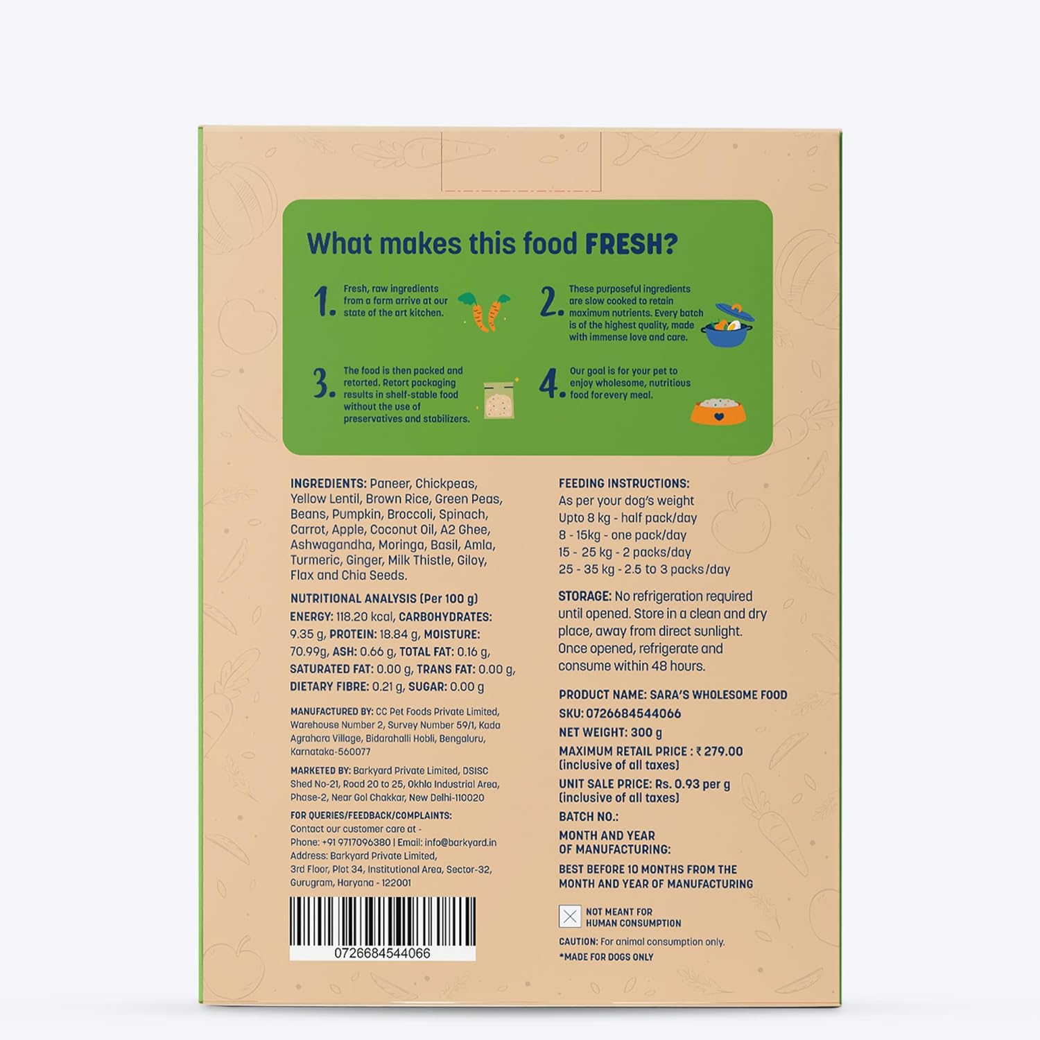 Sara’s Wholesome by HUFT Classic Paneer & Veggies Dog Food | Wet Gravy Meal for All Breeds & Life Stages | No Artificial Flavours, Preservative-Free.