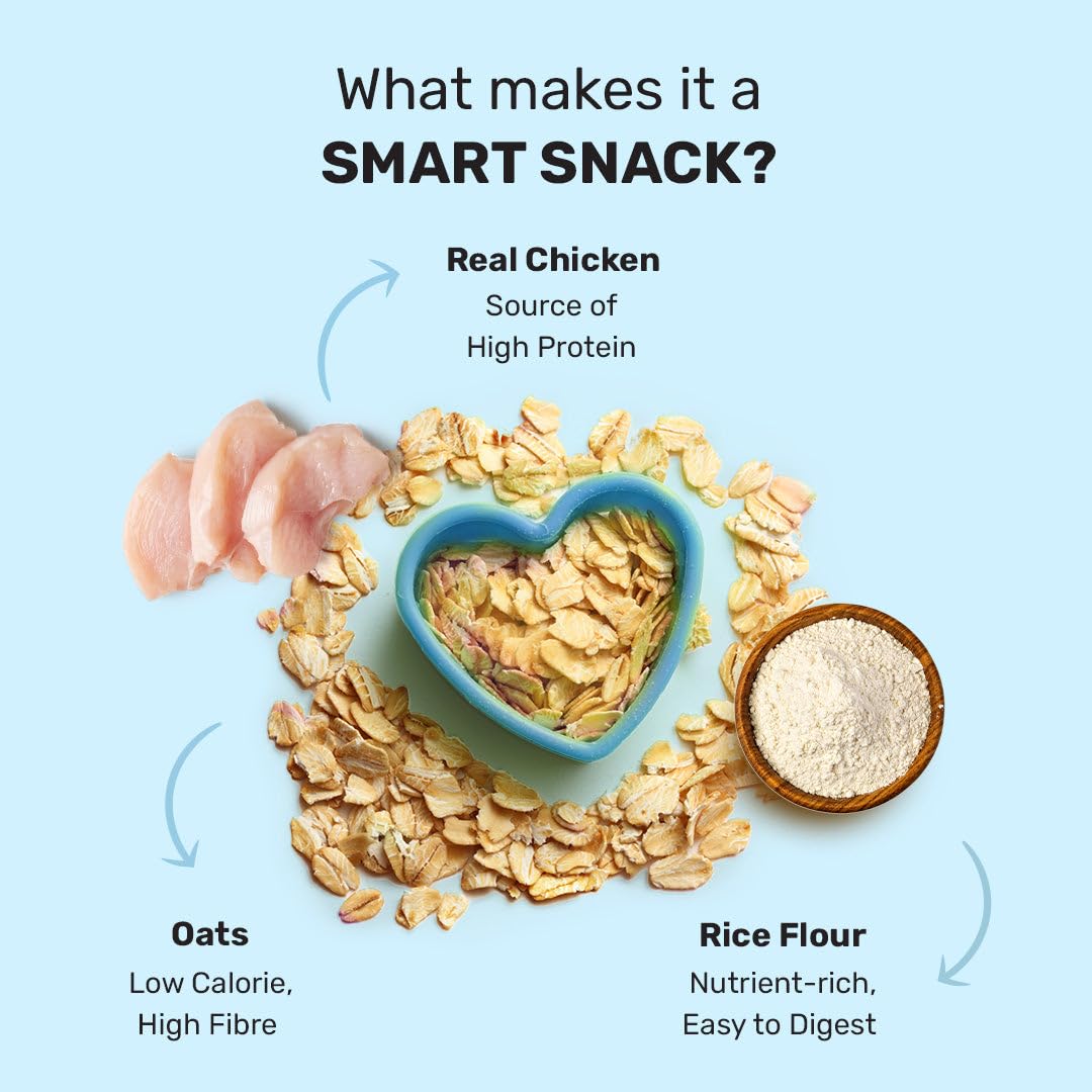 • Made only with 100% real, human-grade chicken, jaggery, oat flour, and rice flour