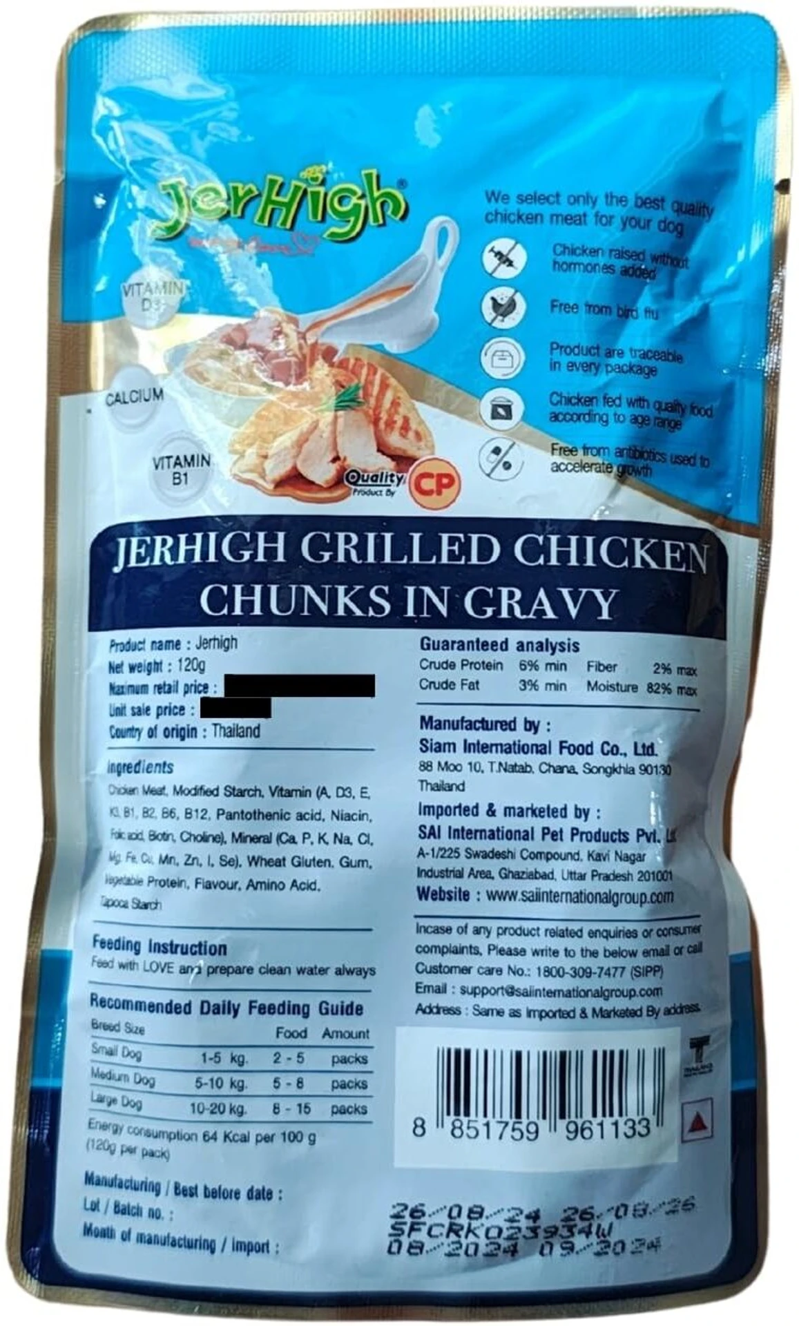 JerHigh Grilled Chicken in Gravy is a premium dog food suitable for all dog breeds and chock full of nutritional value from calcium to vitamin D to strengthen bones, teeth, and the growth of muscles. It is made from real chicken, formed into delectable meaty chunks and topped with our delicious gravy. So terrific that your dog wont be able to resist! Have it on its own or mix it with kibble to widen your dogs palate and increase their appetite.