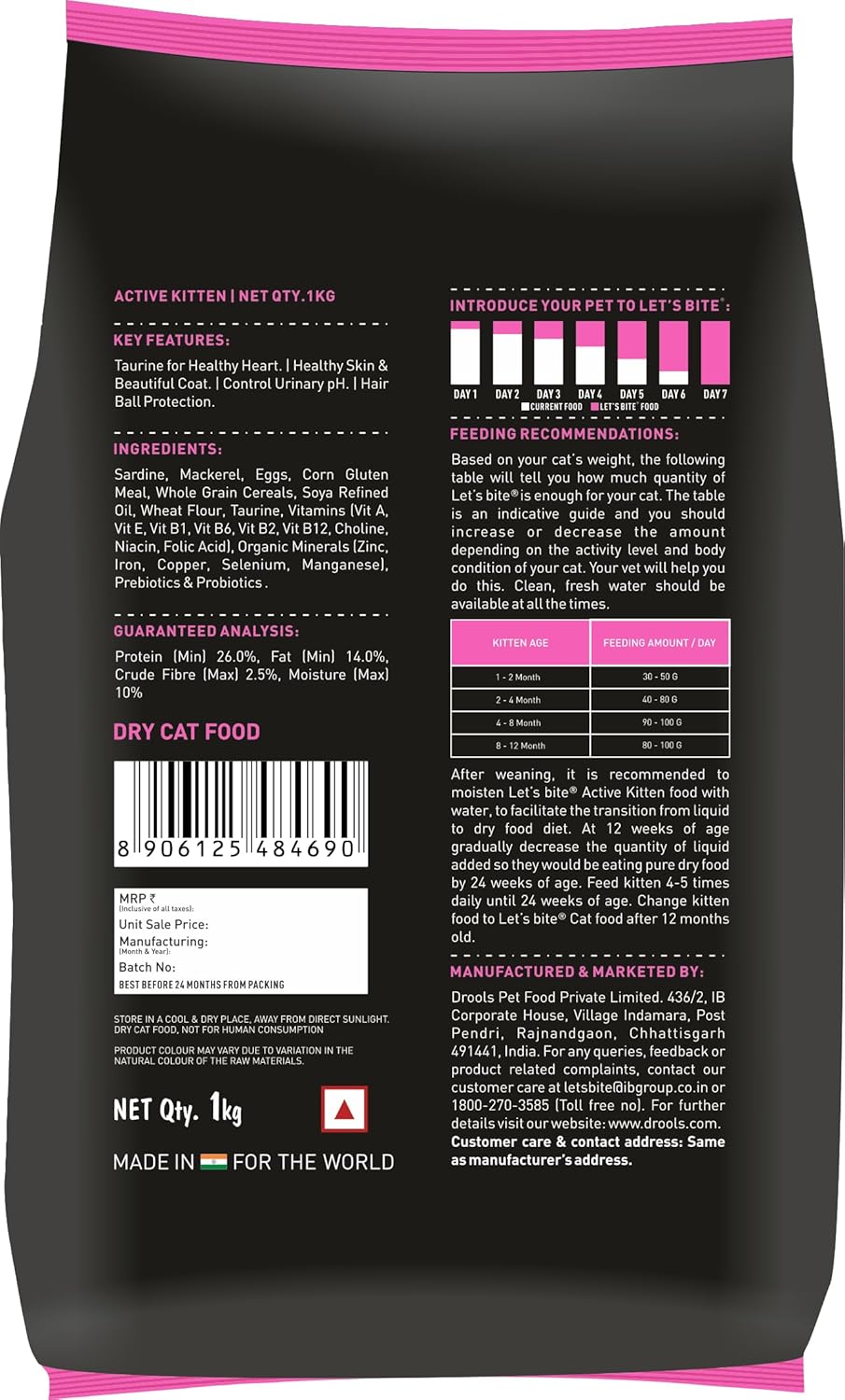 Help your kitten grow into a strong, playful, energetic, and healthy adult cat with Let Bite kitten food. It supports kittens with a healthy eye, healthy bones, healthy brain & healthy heart. It has been made with all the ingredients which the kitten will surely love.