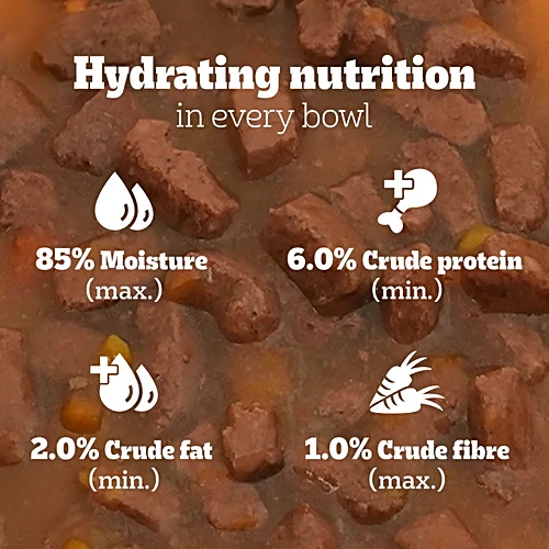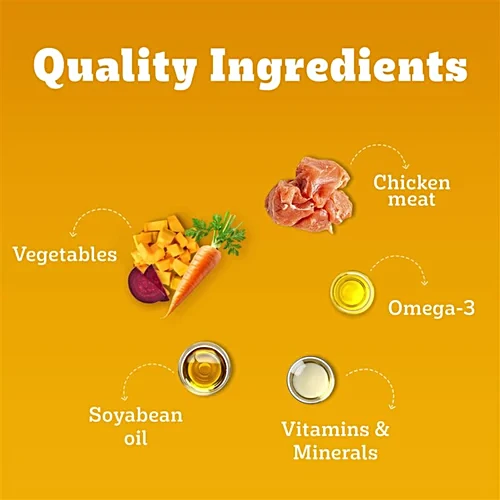 Each bite is loaded with gravy-soaked chicken and liver chunks, combined with wholesome veggies, making every bowl a treat your pup will love. Plus, it’s crafted to provide complete and balanced nutrition, supporting your dog’s strong bones, healthy digestion, a shiny coat, and lean muscles. And with added hydration, your pup stays refreshed and ready for more tail-wagging adventures.