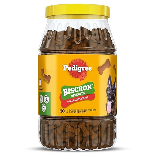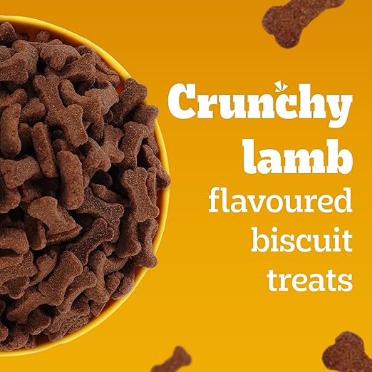 • DELICIOUS FLAVOUR: Pedigree Biscrok Biscuits Dog Treats in Lamb Flavour, are crunchy & nutritious biscuits that delight your dog.