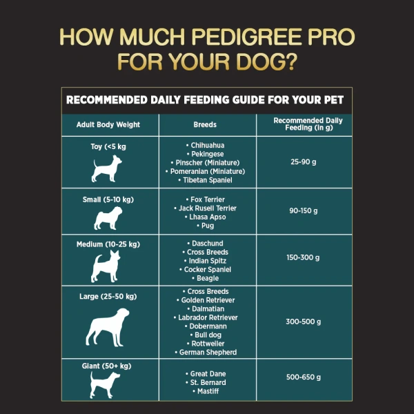 - SUITABLE FOR: Pedigree PRO Senior is suitable for all breeds of dogs, such as Golden Retrievers, German Shepherds, Labradors, Dobermans, Boxers, Beagles, Indie Dogs, Pugs, Bulldogs, St. Bernards, and more.