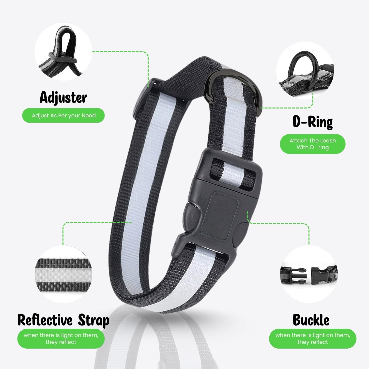 Reflective Dog Collar, Feautures with Adjustable & Durable, Nylon Dog Belt, Heavy Metal D Ring & Strong Buckle, for Dogs (Multicolor)