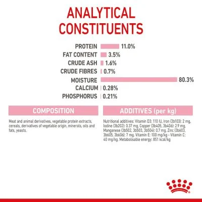 However, Royal Canin Sterilised Cat Chunks in Gravy isn’t just about nutrition, but also taste! This wet food has a flavor that kittens love, plus a smooth texture that is easy for baby teeth to chew.