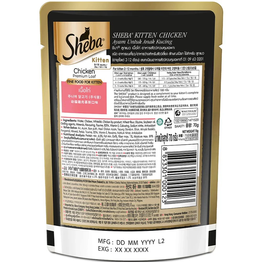 • Your pet kitten adores the taste of real chicken and Sheba ensures your cat savours every bit of it through its loaf format i.e. delicious and easiest to chew.