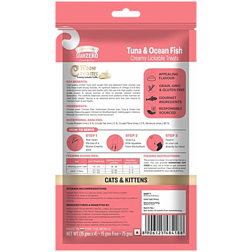 Signature : GrainZero Woow Creamy Lickable Cat Treats – Tuna & Ocean Fish (4+1 Free Sachets)