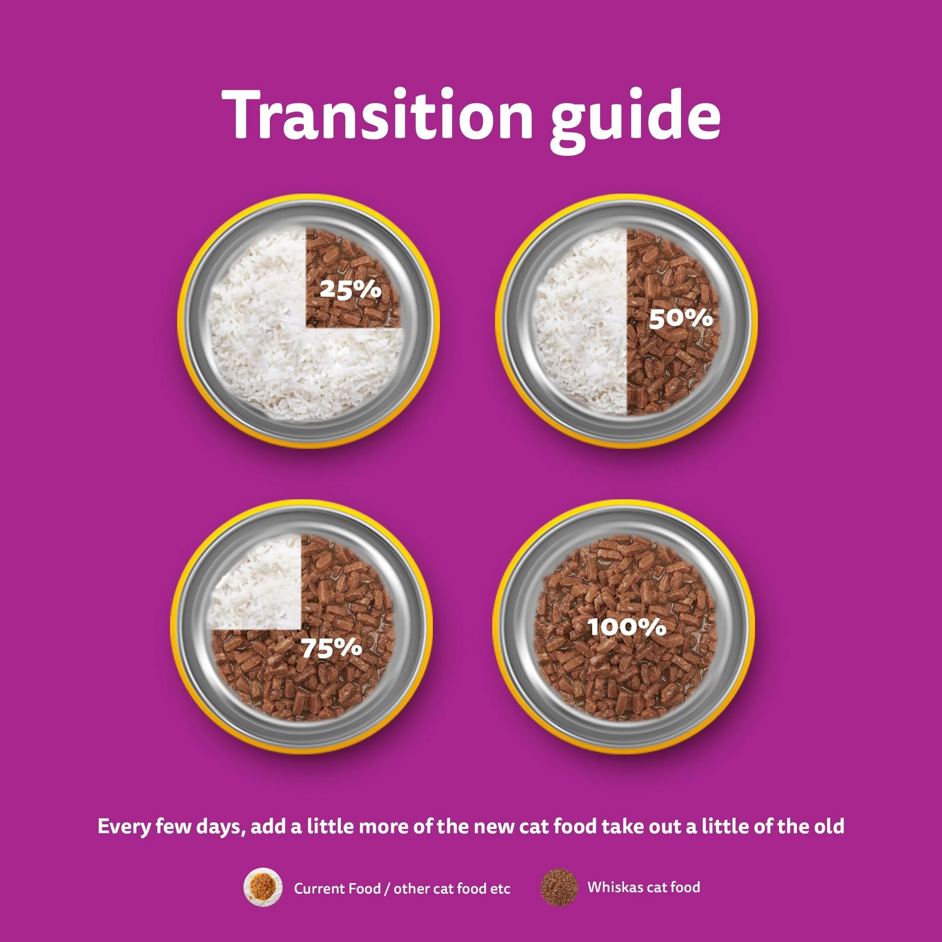 6.In case your pet does not enjoy WHISKAS® kitten food, continue with the mixture of WHISKAS® kitten food and current food for a few more days