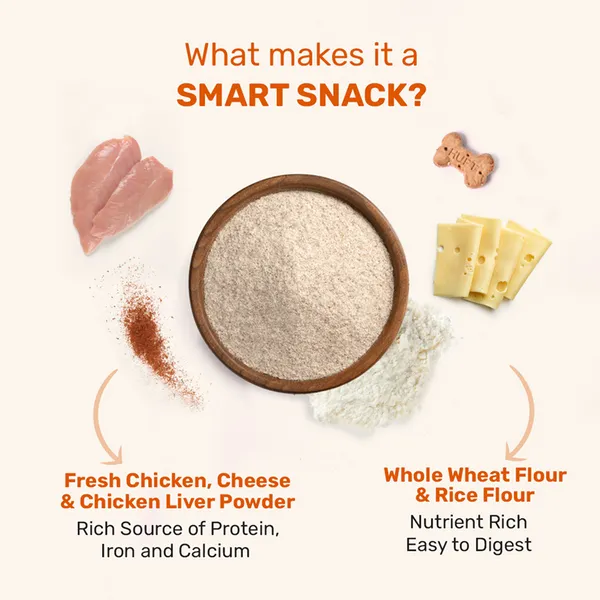HUFT Yummy In My Tummy gluten-free chicken and cheese dog biscuits bring together health and flavour in a thoughtfully crafted recipe. Created for dogs who deserve real ingredients, these biscuits include 100% human-grade chicken, cheese, oat flour, rice flour, and jaggery.