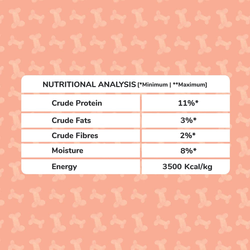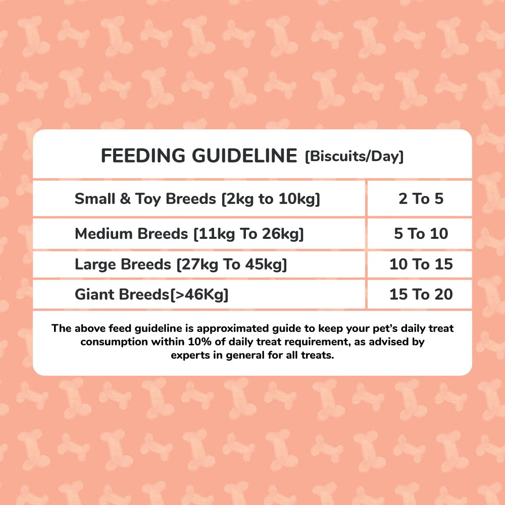 These biscuits are gently oven-baked to retain maximum protein, calcium, vitamins and essential fatty acids from the nutrient-rich ingredients. These work together to improve your dog’s skin and coat health. Being bite-sized and easy to digest, they are the perfect low-calorie training treats. There are 10+ Yummy In My Tummy dog biscuits to choose from-a variety loved by pets and approved by pet parents